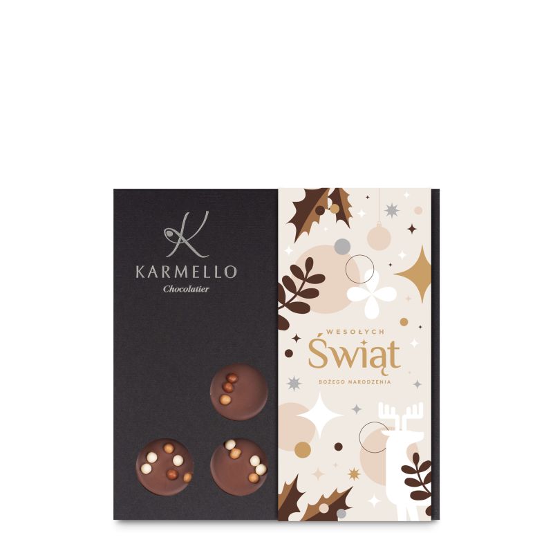 The perfect combination of velvety caramel and Belgian chocolate creates a magical holiday spirit. Each chocolate is a small moment of sweetness that warms the heart and brings a smile. Packaged in an elegant, festive box, it's the perfect way to give your loved ones a little chocolate joy.