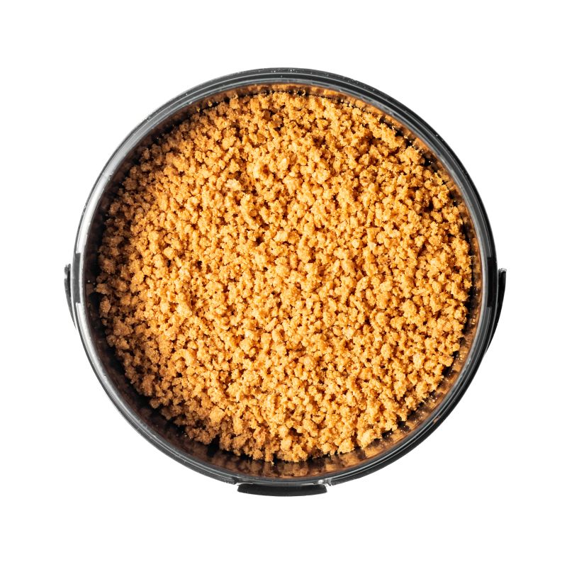 Crushed root cookies in a bucket package