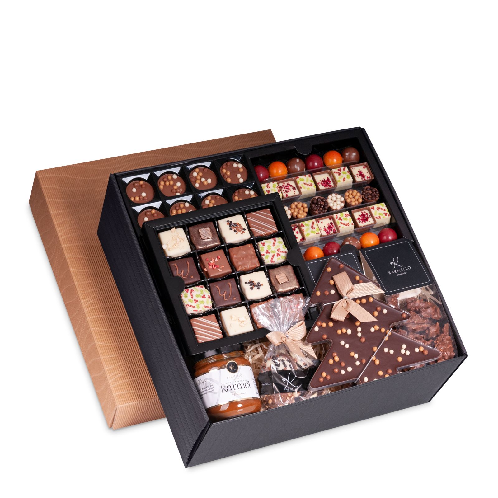 The packaging from Karmello filled to the brim with sweets will be perfect as a Christmas gift. Each gifted person will find something for themselves