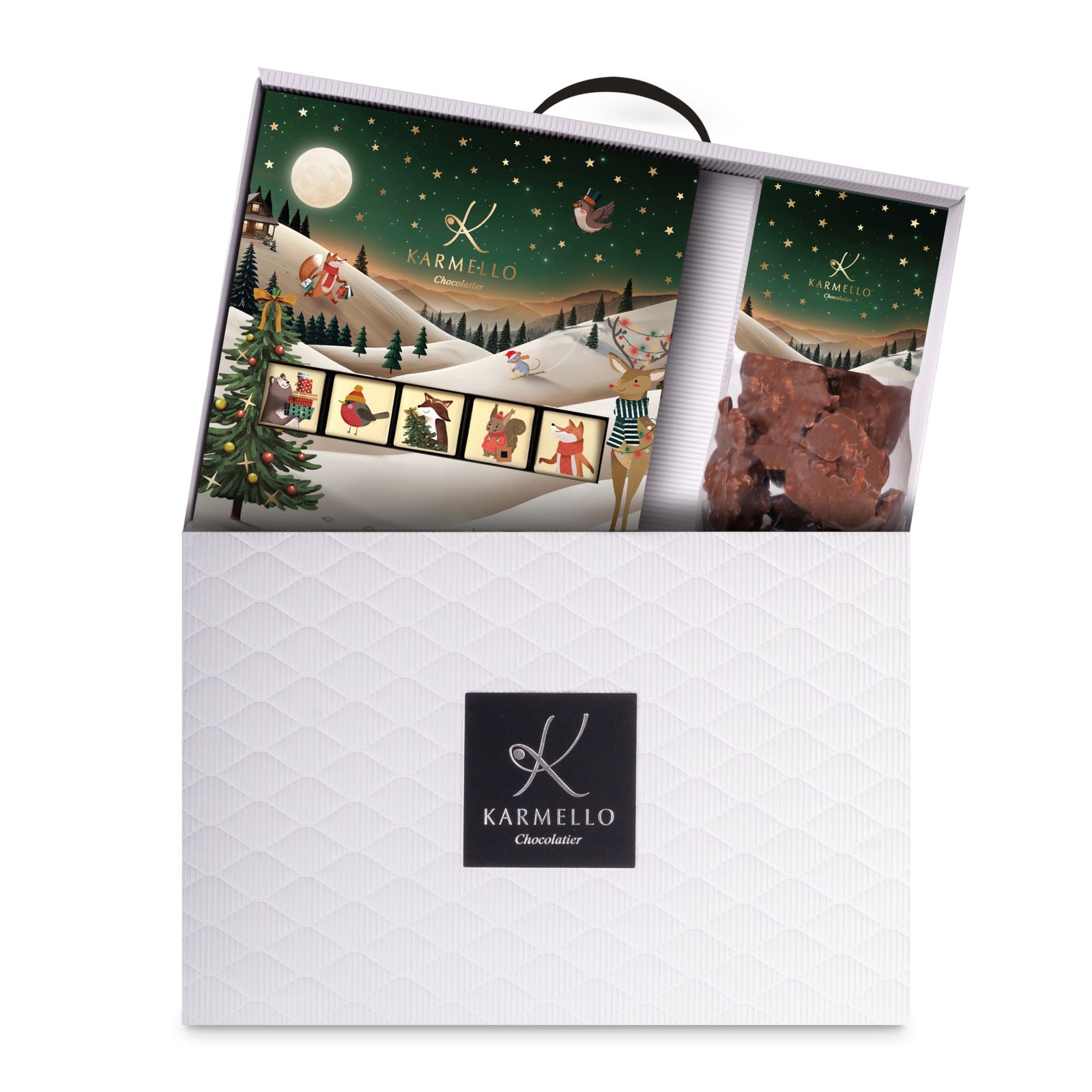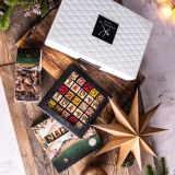 This elegant case holds a unique chocolate set and a Christmas cluster – a combination of handmade chocolates with a touch of holiday magic. This harmonious combination of the velvety sweetness of Belgian chocolate and exquisite additions creates an unforgettable taste ritual. A perfect gift for those who value elegance, quality, and the joy of shared celebrations.