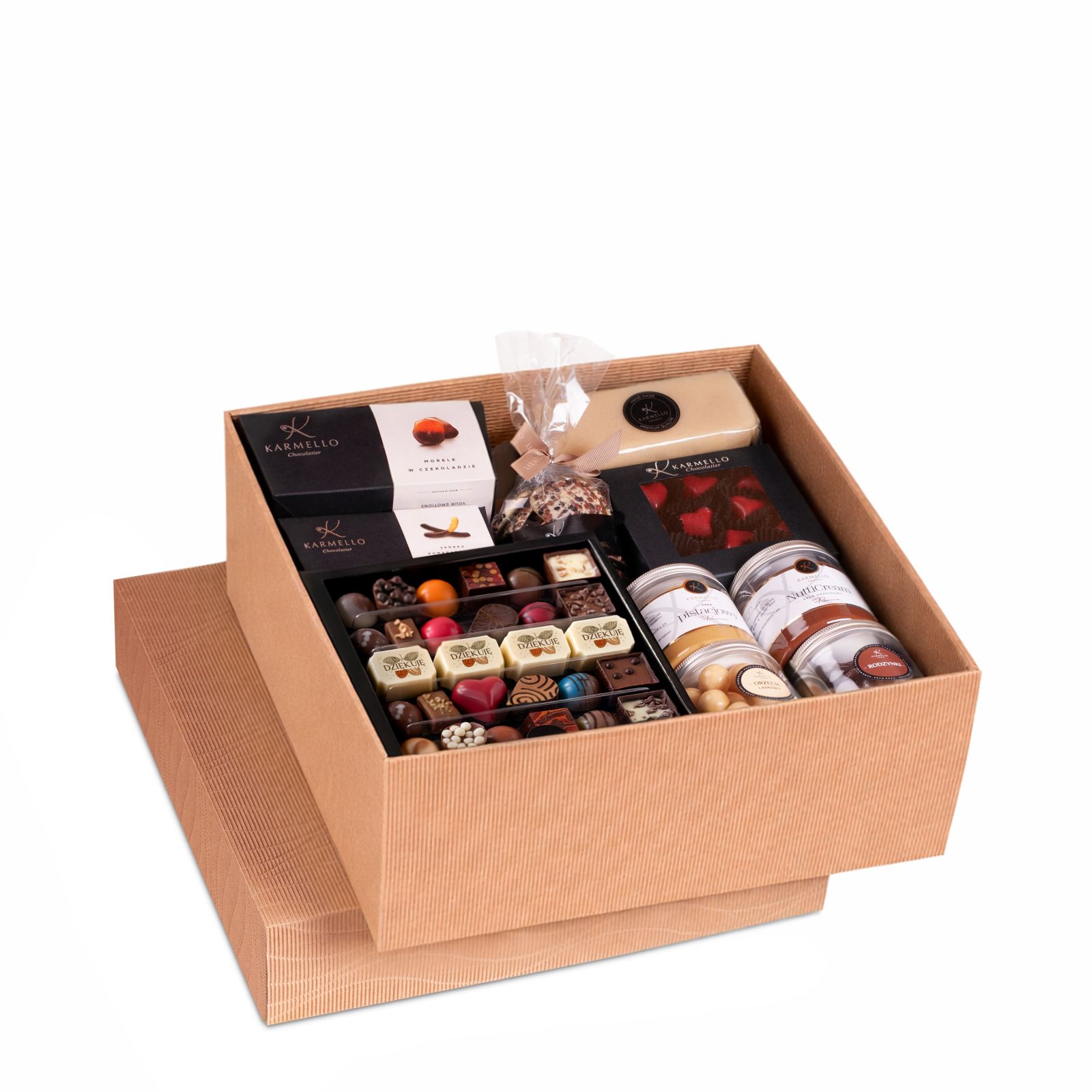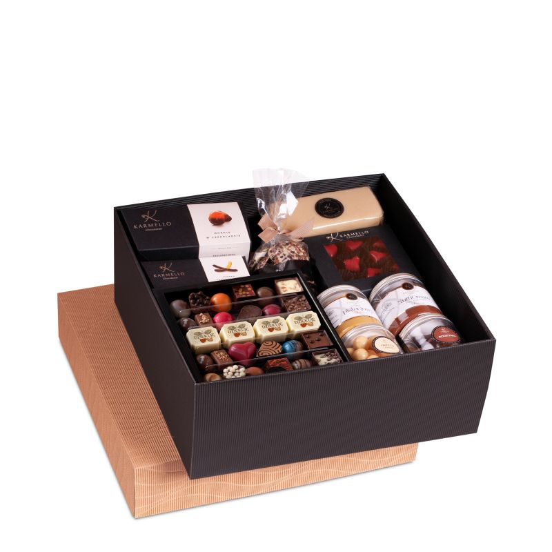 The giant is a real treasure for every gift recipient who loves sweets. It contains a rich collection of delicious products that will surely delight every palate and bring a lot of joy. The package contains many treats, including a set of chocolates, chocolate-covered dried fruit, Karmello cream and many other goodies.