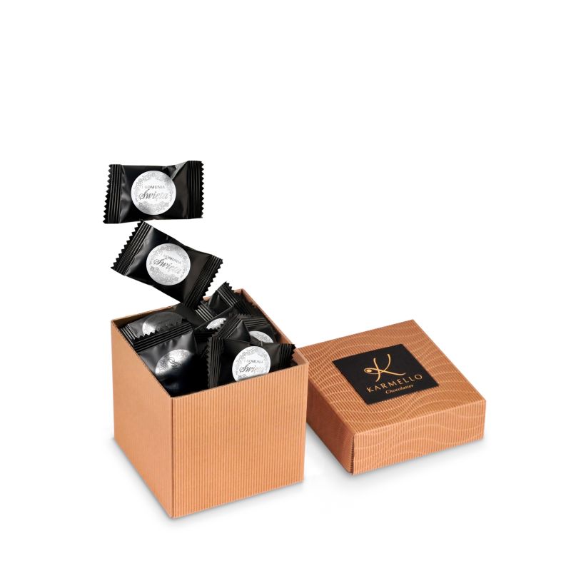 The latest version of our bestselling mini cube packaging contains 40 melt-in-your-mouth gingerbread cookies. Each one has been carefully decorated with a unique First Communion sticker, making them a perfect gift for Communion celebrations. Additionally, the packaging is enhanced with an elegant label, giving it a distinctive character.