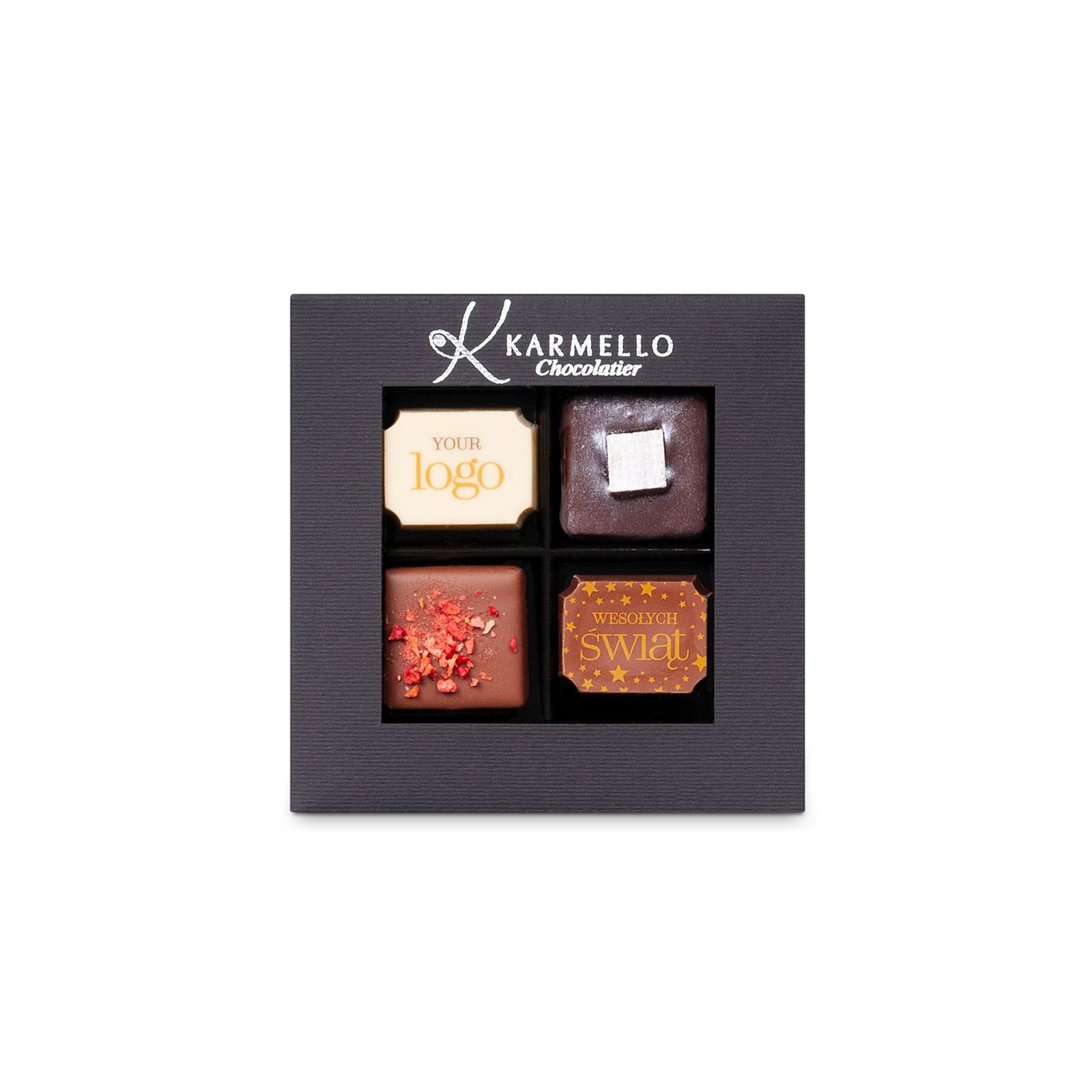 K22/23 COLLECTION OF 4 PRALINES WITH LOGO AND 'MERRY CHRISTMAS’
