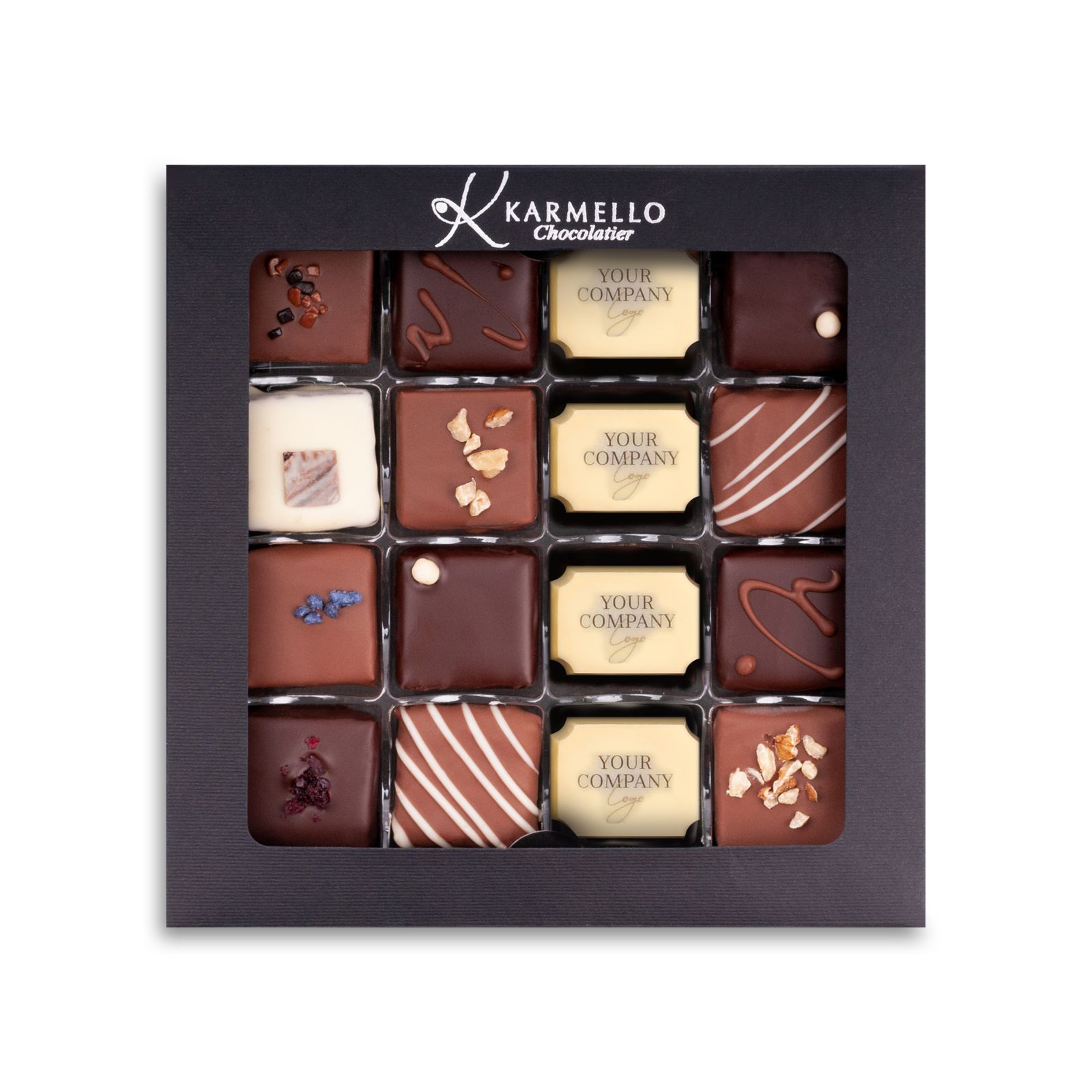 KAR019 16 PRALINES SET WITH COMPANY LOGO