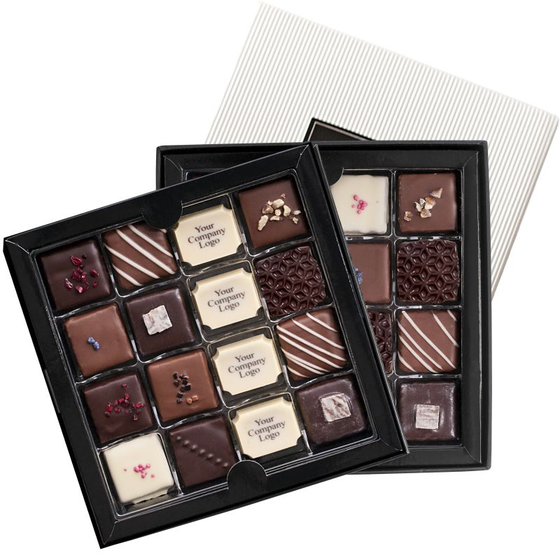 KAR032 DOUBLE-TRAY WHITE SET WITH PRALINES WITH COMPANY LOGO