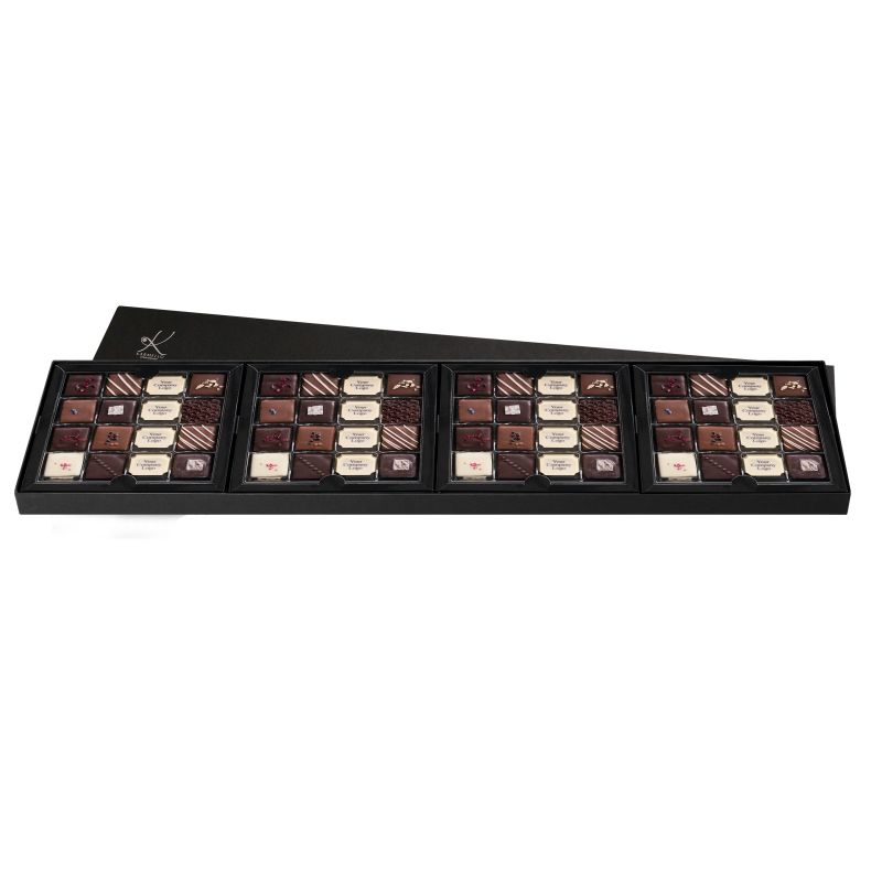 KAR144 OBLONG FOUR-TRAY SET OF PRALINES WITH COMPANY LOGO