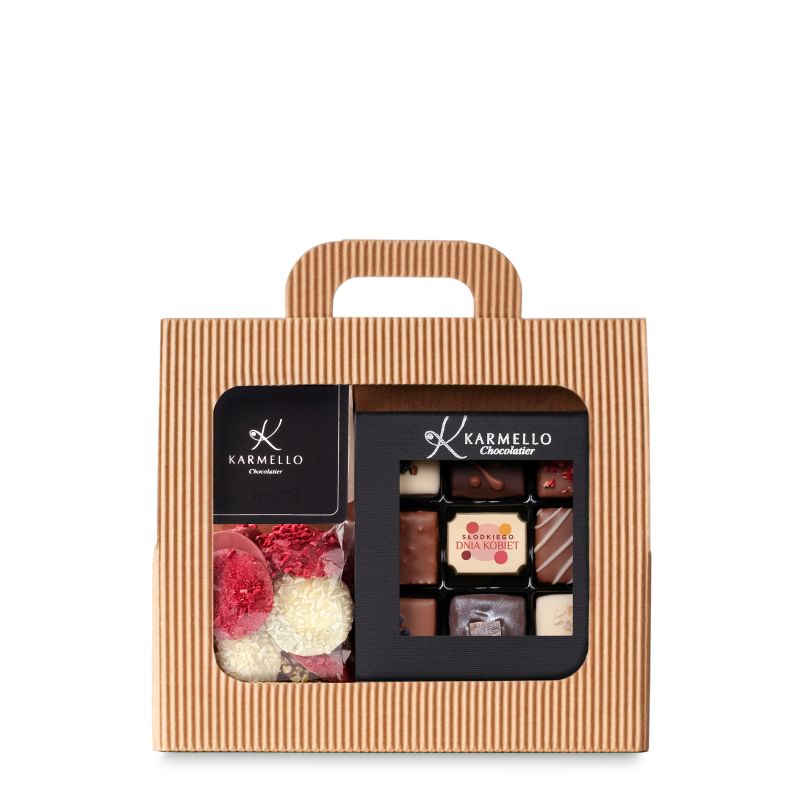 Elegant packaging with a handle to make gifting easier, plus a display window that showcases the full range of chocolate treats inside. A perfect gift for Women’s Day.