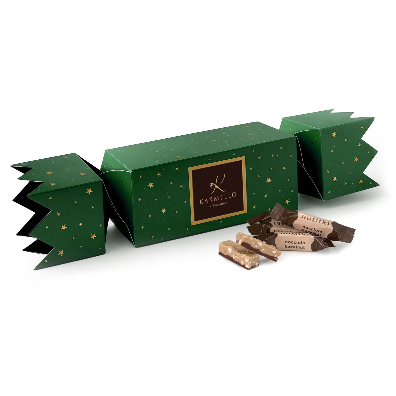 The Hazelnut Cracker contains 20 delicate white chocolate pralines, in which creamy sweetness intertwines with roasted hazelnuts and velvety Gianduja chocolate.