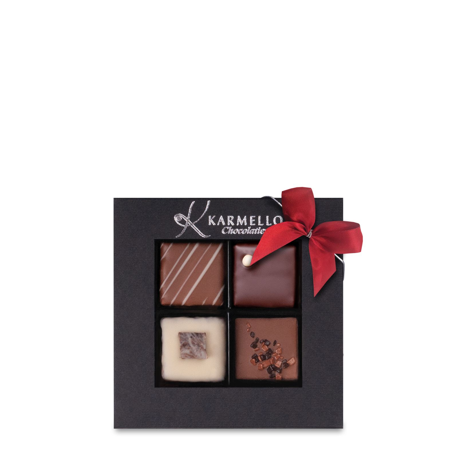 A composition of 4 pralines selected to delight every woman on her feast day. The packaging is additionally decorated with an elegant red bow.