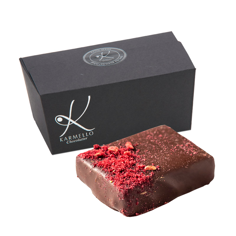 A traditional combination of raspberry jelly with dark ganache, covered in dark chocolate.