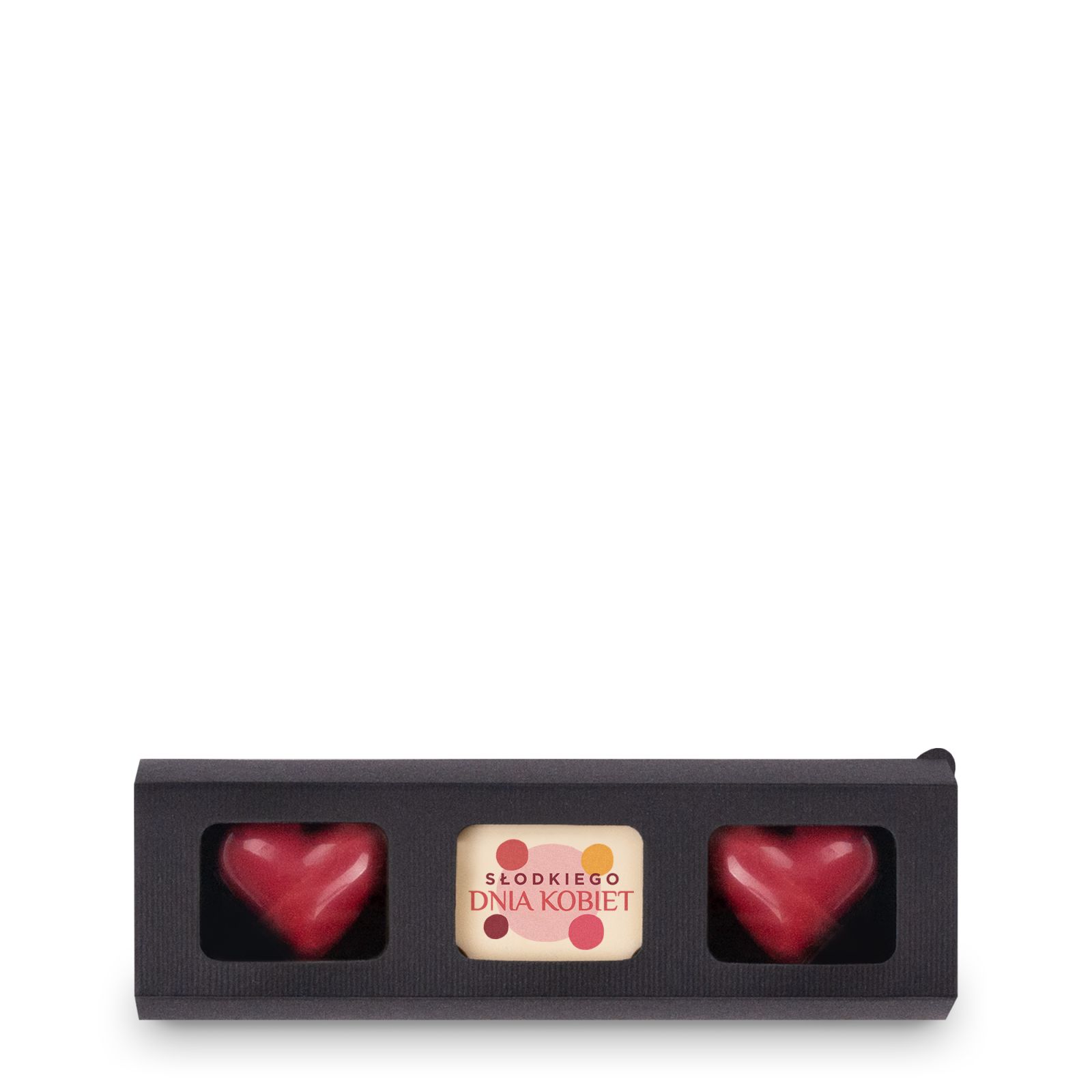 Caramel hearts accompanied by a chocolate with the seasonal inscription “Sweet Women’s Day” are the perfect choice for a sweet gift for every woman on her special day.