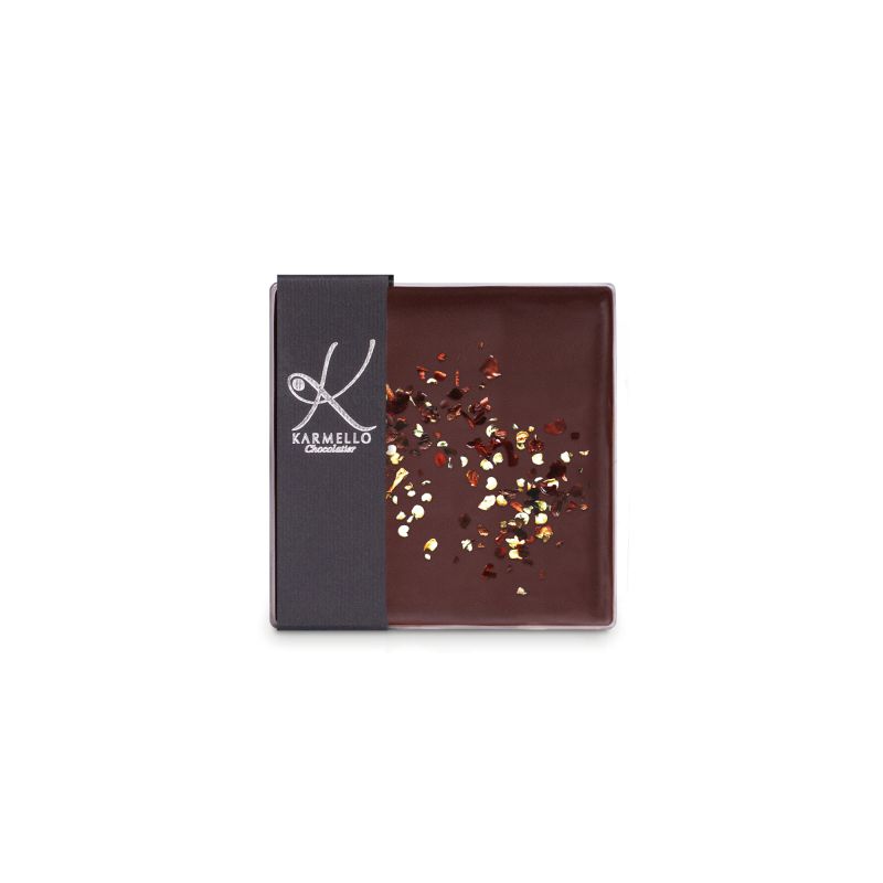 Z078 Dark chocolate decorated with crushed chili peppers
